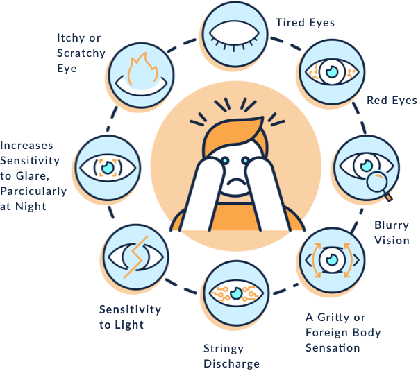 - Difficulty with Contact Lenses: Discomfort or difficulty wearing contact lenses.